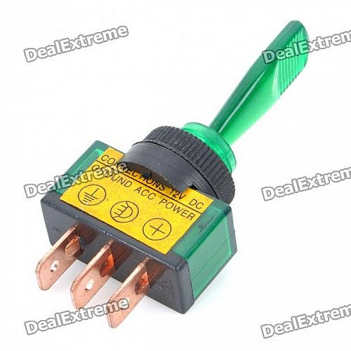 Car Toggle Switch with Green LED Indicator (DC 12V / Vehicle DIY)