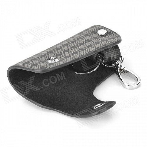 CP009 Universal Genuine Leather Protective Pouch Keychain for Car Smart Key - Grey + Black