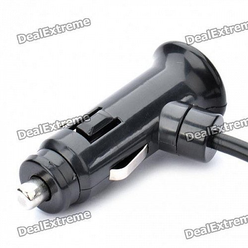 Dual Car Cigarette Sockets Power Adapter with USB Power Port - Black (DC 12~24V)