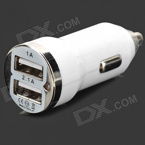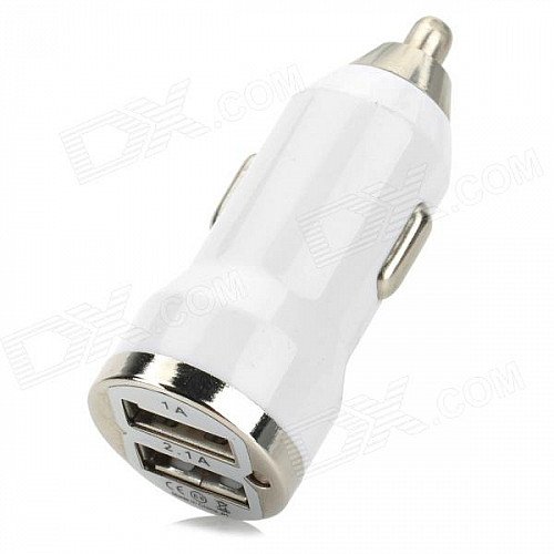 Dual USB Car Cigarette Lighter Power Charger - White (12~24V)
