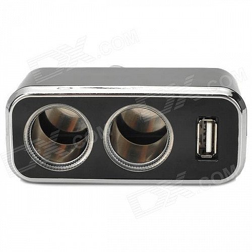 ShunWei SD-1909 Double Socket w/ USB Car Cigarette Lighter Splitter Charger - Black