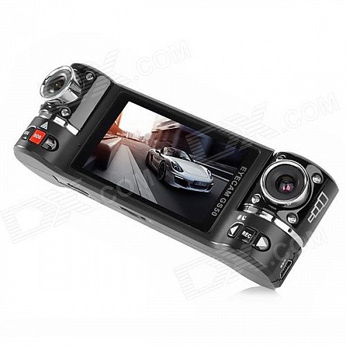 GS50 720P 2.7" TFT 2MP CMOS Wide Angle Dual-Camera Car DVR w/ 8-LED IR Night Vision - Black