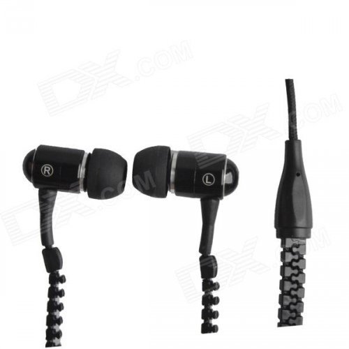 HH-135 Novel Zipper Style Universal Wired In-ear Headset - Black (3.5mm Plug)