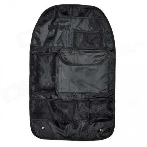 - Attaches to front seat headrest with straps. It can hold map, pen, bottle, magazine, umbrella, etc. Keeps your vehicle's interior well organized