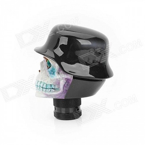 Cool Skull in Hat Style Resin Car Gear Shift Knob - White + Black