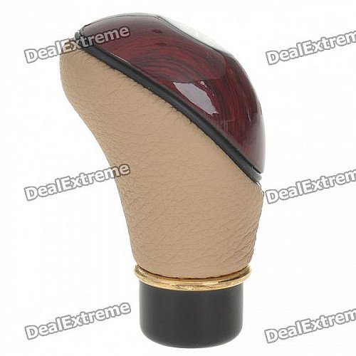 Vintage Universal Mahogany Style PU Leather Car Shift Gear Knob (Black + Beige)