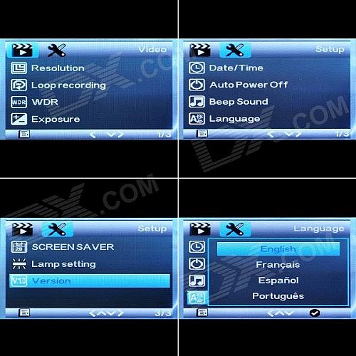 | Packing List | 1 x Car DVR1 x USB cable (70cm)1 x HDMI cable (95cm)1 x AV cable (110cm)1 x Car charger (12-24V / 290cm cable)1 x Chinese & English user manual1 x Suction cup Holder |