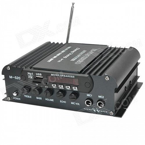 M-520 Car Motorcycle Hi-Fi USB/SD/FM Digital Player Amplifier w/ Double Microphone Port - Black