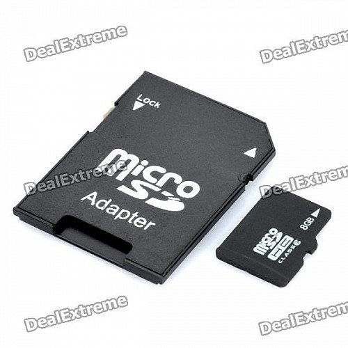 8GB Micro SD/TF Card with SD Card Adapter - Black (Class 6)