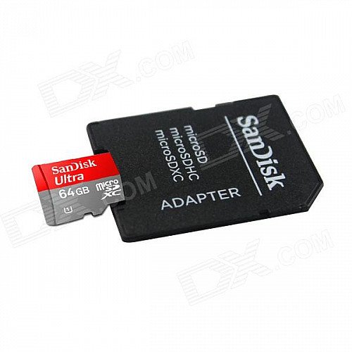 Genuine SanDisk Micro SDXC / TF Memory Card w/ SD Card Adapter - Grey + Red (64GB / Class 10)