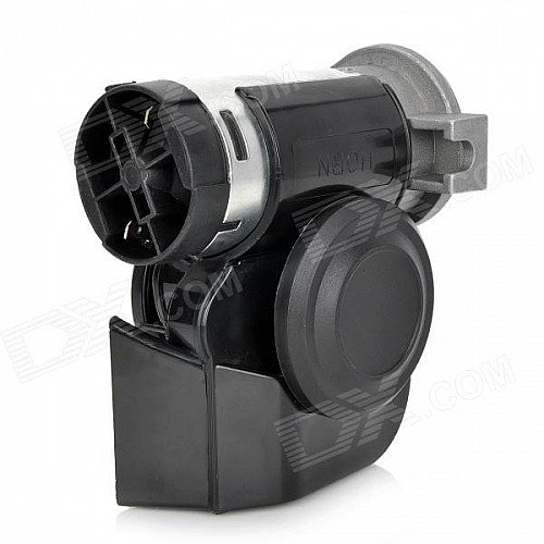 Compact Motorcycle Air Horn with Relay - Black + Silver (12V)