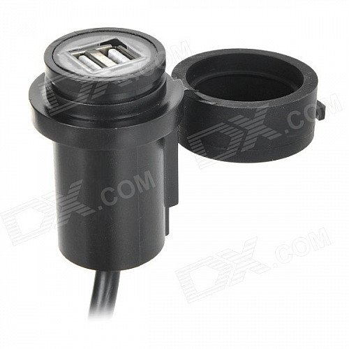 DIY Motorcycle Dual-USB Power Charger Adapter w/ Water Resistant Cover for GPS / Cell Phone