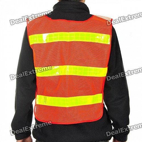 Light Reflective Strips Orange Safety Mesh Vest - Red