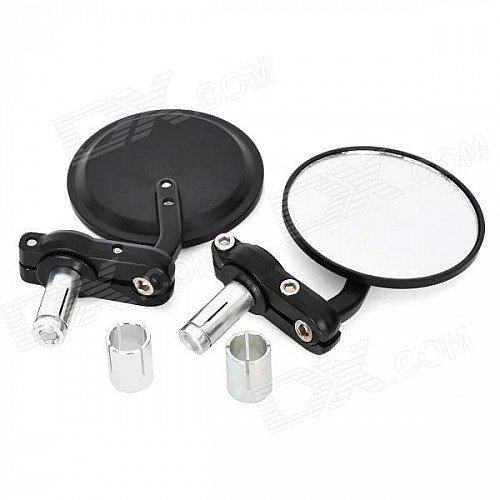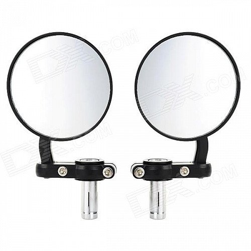 Universal Round Shape Aluminum Motorcycle Rearview Mirror - Black (Pair)