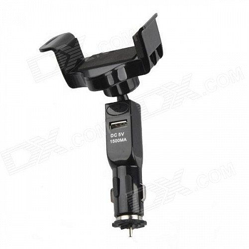 Multifunctional Short Car Holder Bracket + Single USB Output Car Charger for Smartphone - Black