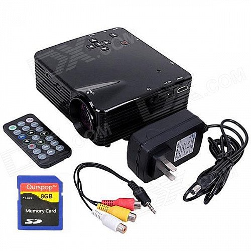 UR53 Mini 1080P LED Portable Projector w/ AV / VGA / USB / HDMI / 8GB SD Card - Black