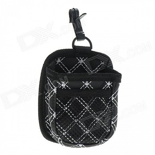 PU Leather Nylon Anti-Skid Phone Bag for Car - Black + White