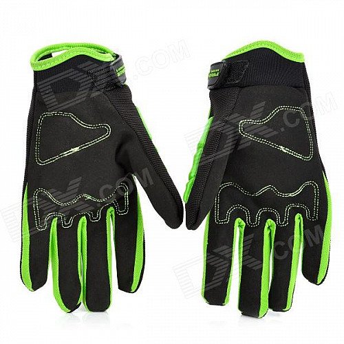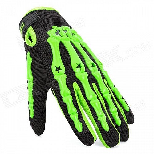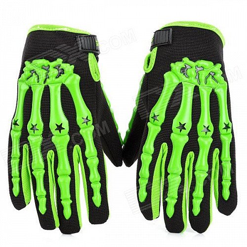Skeleton Anti-Skid Breathable Motorcycle Racing Full-Finger Gloves - Green + Black (Size-M / Pair)