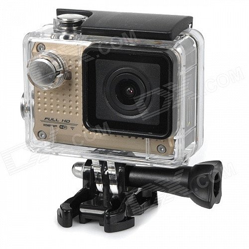 S30W Water Resistant 1.5" TFT CCD 1080P HD 150' Wide-Angle Sports Camcorder w/ Wi-Fi - Gold + Black