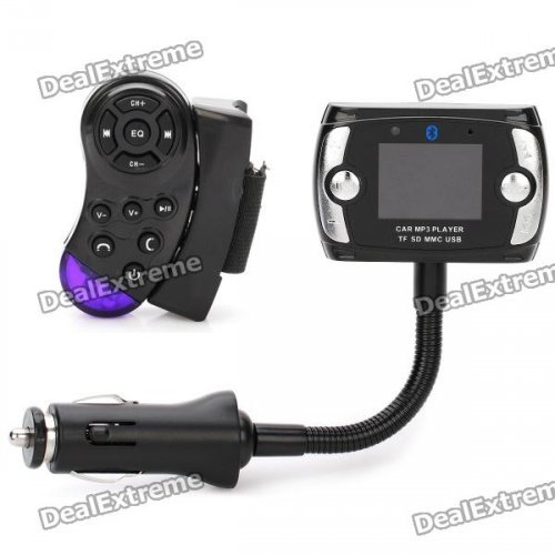 Steering Wheel Mount Bluetooth Car Kit + 1.5" LCD MP3 Player Transmitter Set - Black