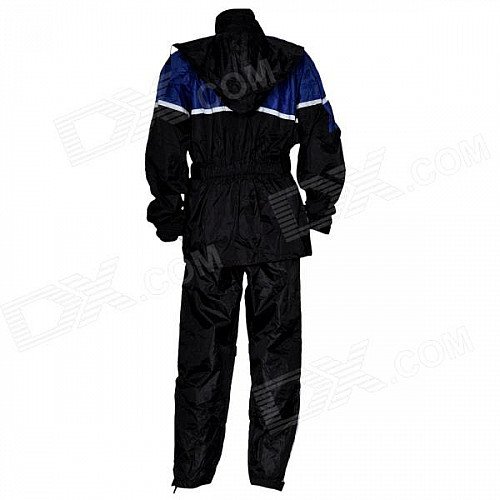 Tanked TRC16 Motorcycling Polyester Reflective Waterproof Rain Coat + Pants - Black + Blue (Size XL)
