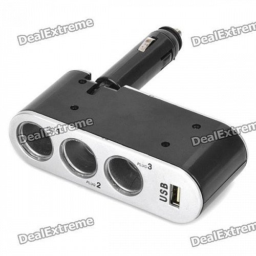 - Increase your car cigarette lighter from 1 to 3 sockets with an additional USB port