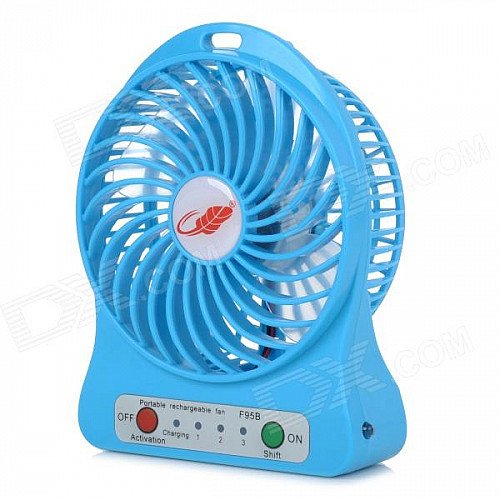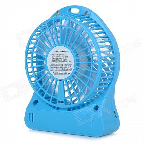 Portable USB 2.0 Powered 4-Blade 3-Mode Mini Desktop Fan w/ LED - Blue (1 x 18650)