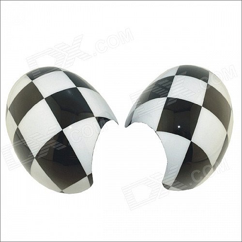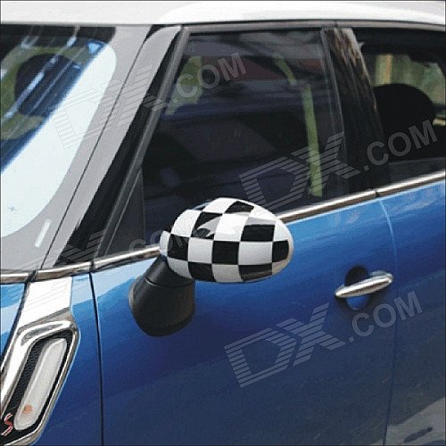 Carki D1409118 Grid Pattern ABS UV Protected Car Door Mirror Cover Stickers - White + Black (2 PCS)