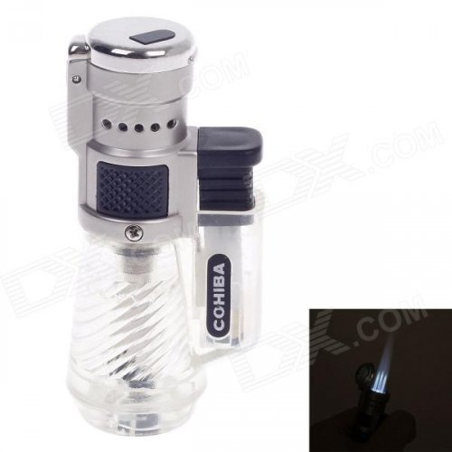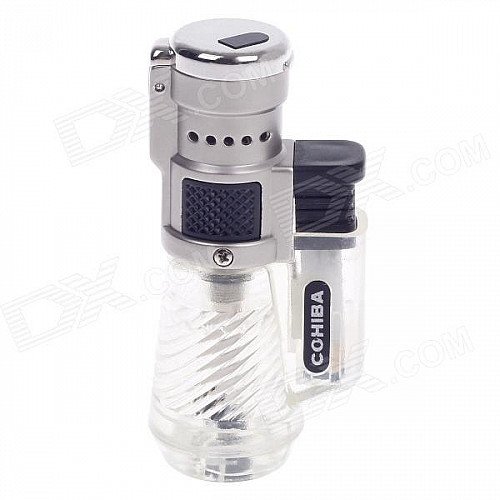 COHIBA Fashionable Windproof Butane Lighter - Black + Silver + Transparent
