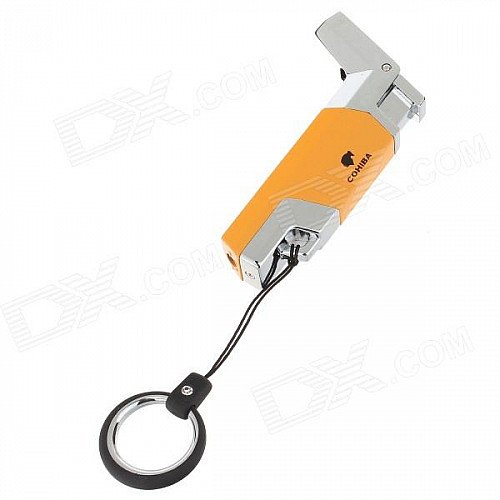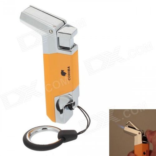 COHIBA H023-2A Super Fire Windproof Butane Jet Flame Lighter - Yellow + Silver
