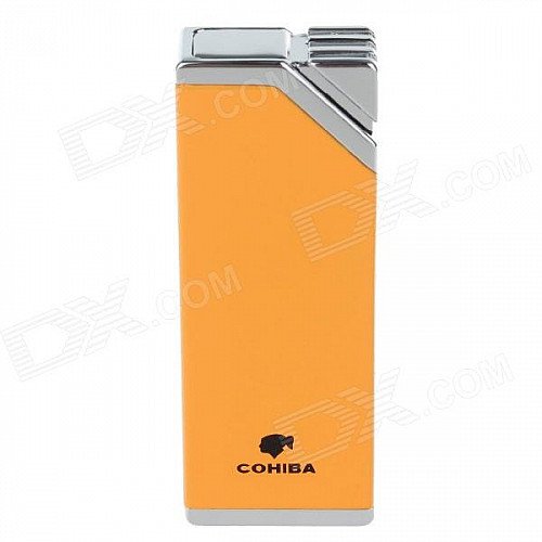 COHIBA H026A Super Fire Windproof Butane Jet Flame Lighter - Yellow + Silver