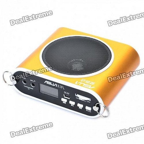 ASUA 1.0" LCD Multi-Function MP3 Player Megaphone Voice Amplifier with FM / TF / Mic Jack (Gold)