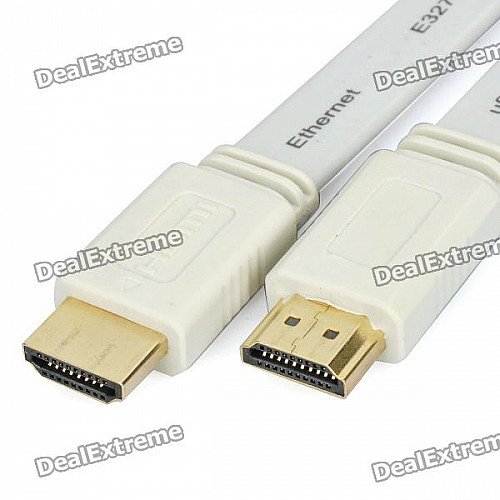 1080P HDMI 1.4 Male to Male Flat Connection Cable - White (500cm)