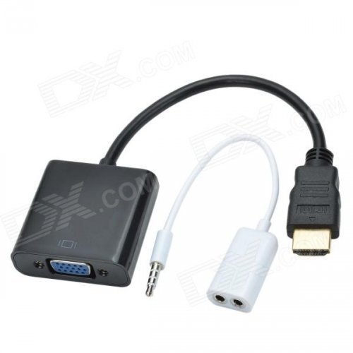 CHEERLINK HDMI Male to VGA Male Cable + Bisected Audio Cable Set - Black (22.5cm)