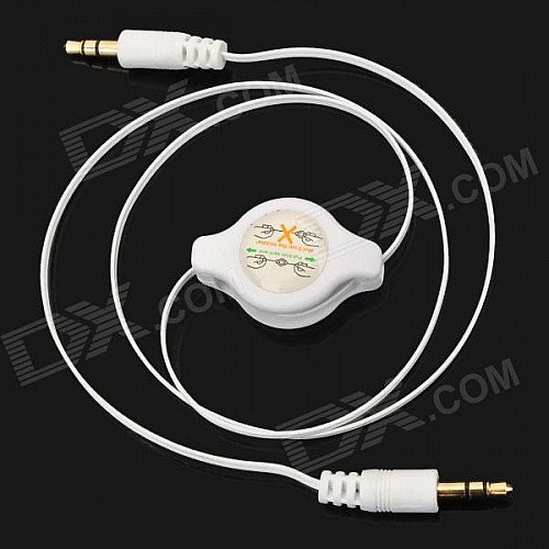 Retractable 3.5mm Male to Male Audio Cable - White (80CM-Length)