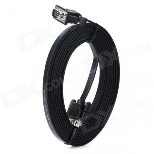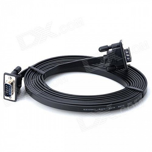 Thin VGA Male to Male Flat Connecting Cable for Computer / Projector + More - Black (3m)