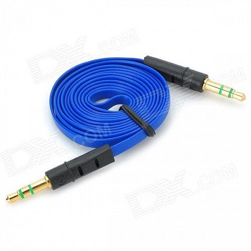 YB-35 3.5mm Jack Male to Male Shielded Flat Audio Cable - Blue + Black (102cm)