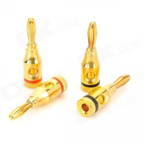 4mm Copper Banana Plugs for Speaker / Amplifier + More - Golden + Black + Red (2 Pairs)
