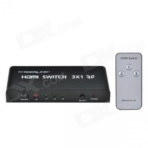 CHEERLINK L3HDSW0301 3-In 1-Out Full HD 3D 1080P HDMI 1.4a Switch w/ IR Control - Black
