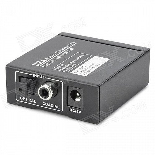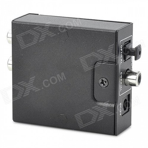 Digital Optic Coaxial RCA Toslink Signal to Analog Audio Converter w/ US Plug Adapter - Black