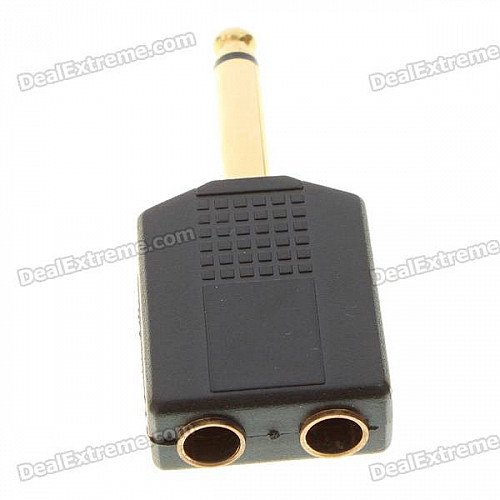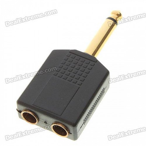Gold Plated 6.5mm Male to 2 Female Mono Audio Split Adapter