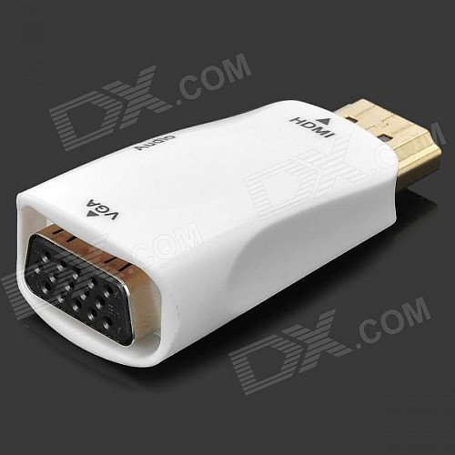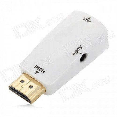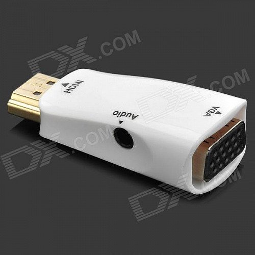 HDMI Male to VGA Female + Audio Jack Adapter - White + Golden