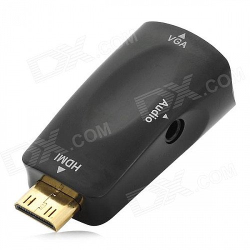 Mini HDMI Male to VGA Female + Audio Jack Adapter - Black + Golden