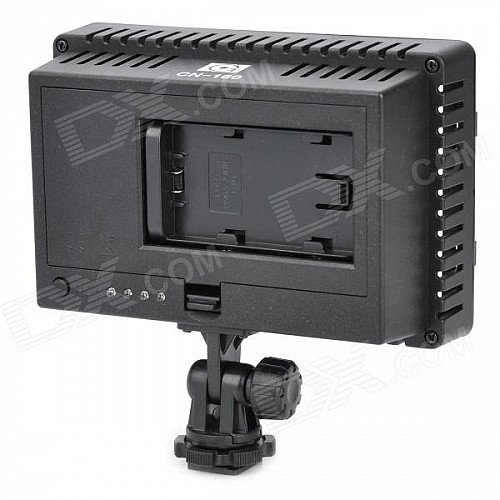 Other Features With 160-LED lights for optimum illumination and diffuser; Helps to ensure your picture's perfect settings; Can be used in video taking, either for lights setup or supplement; There are 3 filters included with this item, with Spotlight effect, Diffuse effect, and for reducing the color temperature to 3200K; Rotate switch for on / off and brightness adjustment; Adopts concentration LED lights, irradiation distance can reach more than 5m, suitable for long distance shooting; The light can also be adjusted from concentrating light to diffusing light which is suitable for short distance shooting; One touch battery check with 4 level indicator: press the test button, 4-LED On means battery full, 1-LED On means battery low; Designed with standard hot shoe plug, so can be installed on the DV or DSLR, and DC with standard hot shoe; Compatible batteries (not included): Sony NP-Series Li-ion rechargeable battery (NP-FH70, NP-FM55H, NP-F550), Panasonic CGR-D16S rechargeable battery, 6 x Alkaline / Ni-MH AA Batteries; Compact design, high power, good durability, and low heat output; High quality with long service life