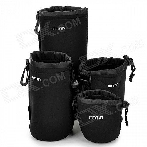 Water Resistant Protective Cotton Lens Bag Pouch Set for DSLR - Black (XL + L + M + S)