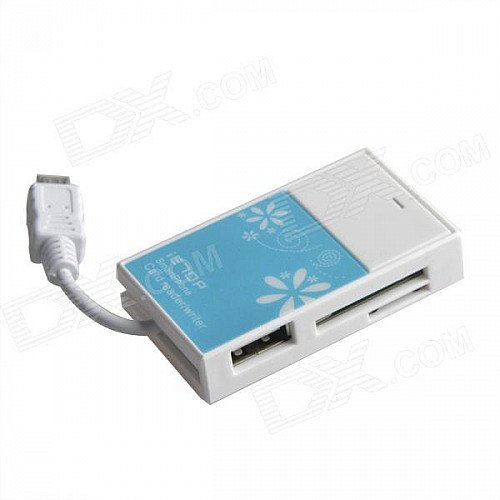 3-in-1 TF / SD Card Reader + 1-Port USB 2.0 HUB for OTG Cellphone - White + Blue (Max. 64GB)