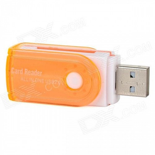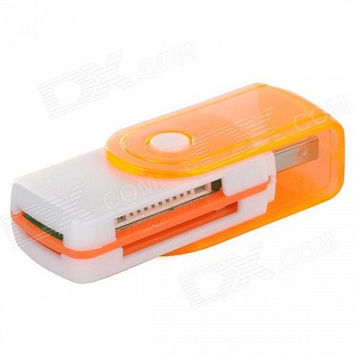 4-in-1 Rotate-to-open SD / TF / MS / M2 Car Reader - White + Orange (32G Max.)