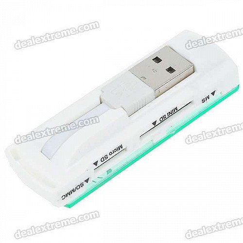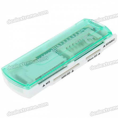 Compact All-in-One Mini USB 2.0 MS/M2/Mini SD/TF/SD/MMC Card Reader (Translucent Green)