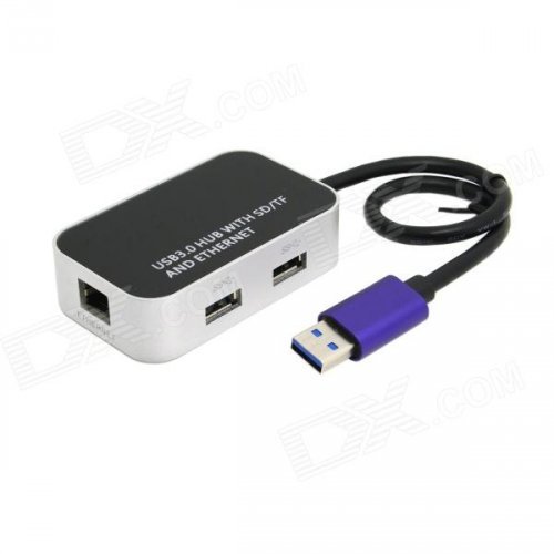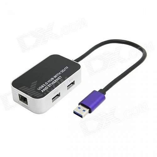 CY U3-166 USB 3.0 Dual Port Hub & TF Card Reader & 1000M Gigabit Ethernet Combo Adapter - Black