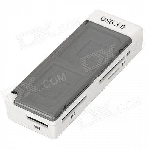 High Speed USB 3.0 MS / SD / M2 / Micro SD Card Reader - White + Translucent Grey